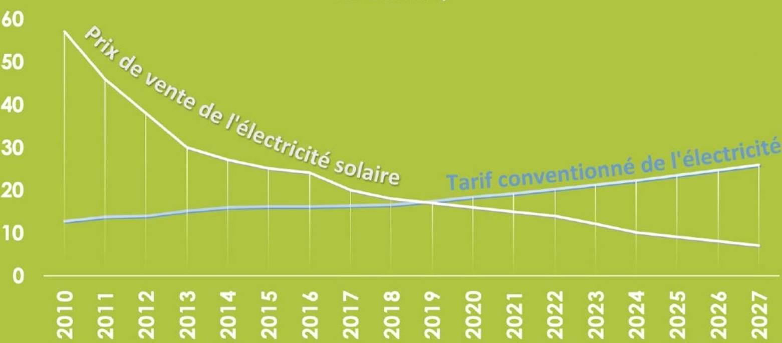 kWh). Ceci alors que le prix de revient de l’électricité solaire diminue